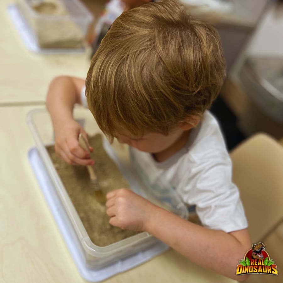 Whether you're planning a birthday party, daycare enrichment, or an early education event, this activity brings sensory play, surprise, and imagination all together. Kids will squeal with excitement as they sweep away the dirt at their dig site to reveal hidden toy prizes.